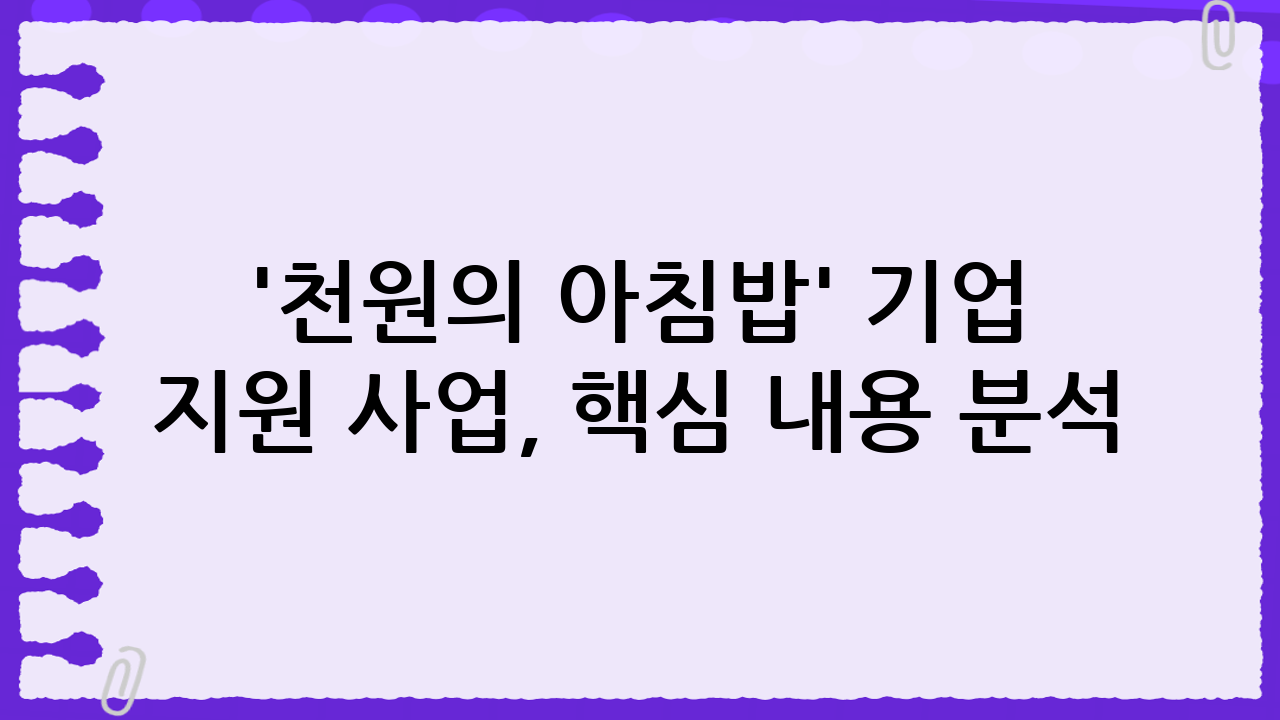 '천원의 아침밥' 기업 지원 사업, 핵심 내용 분석