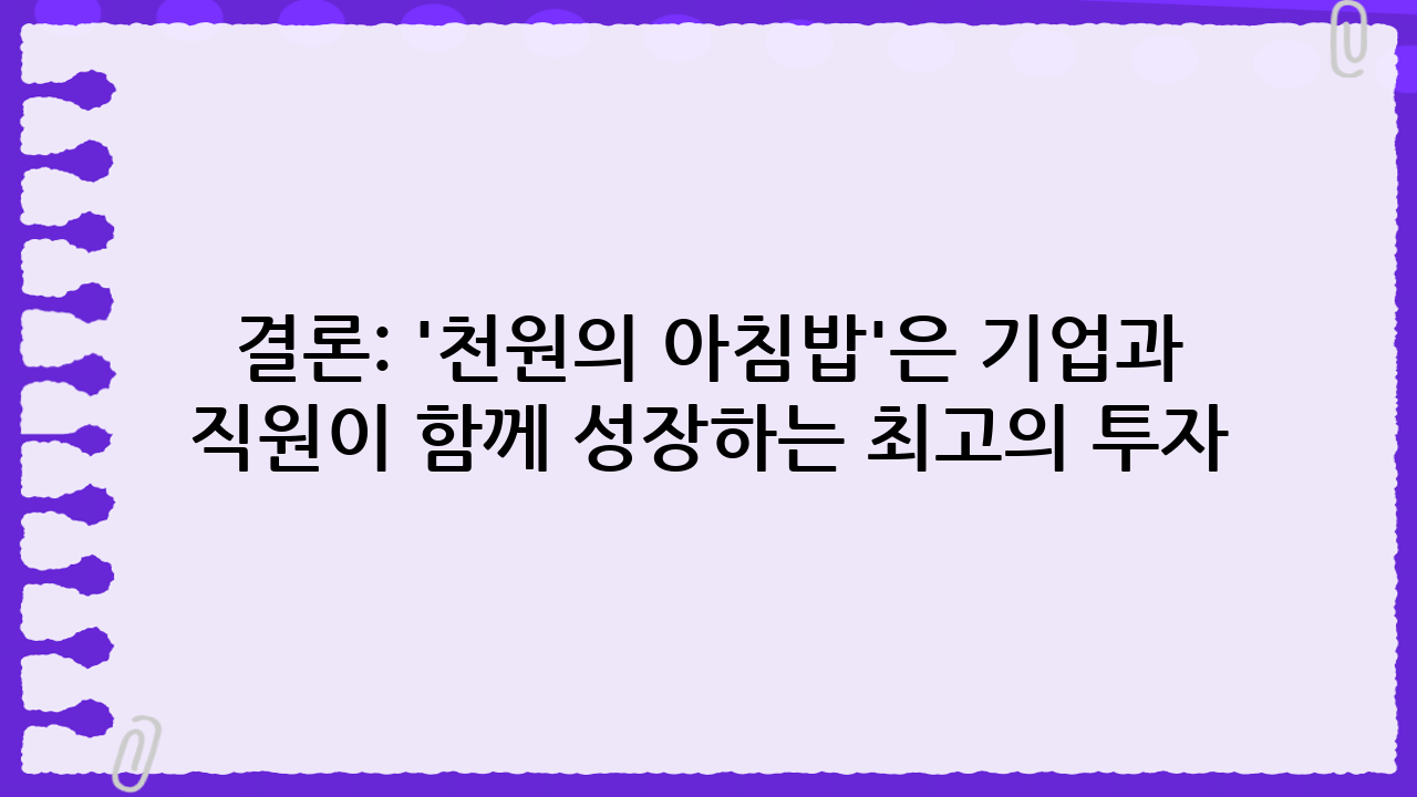 결론: '천원의 아침밥'은 기업과 직원이 함께 성장하는 최고의 투자