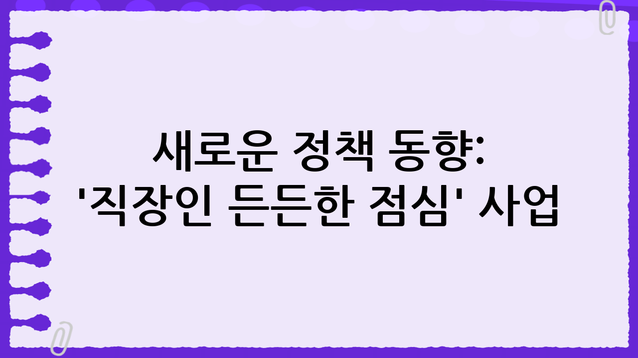 새로운 정책 동향: '직장인 든든한 점심' 사업