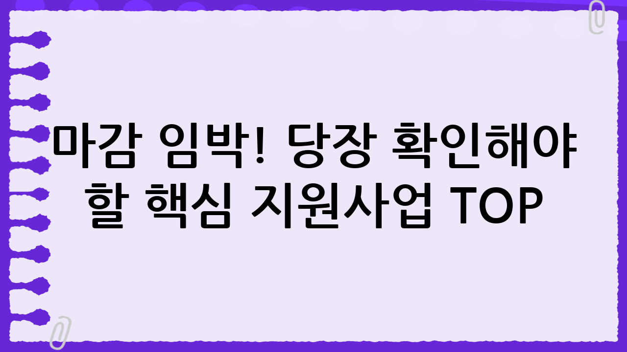 마감 임박! 당장 확인해야 할 핵심 지원사업 TOP
