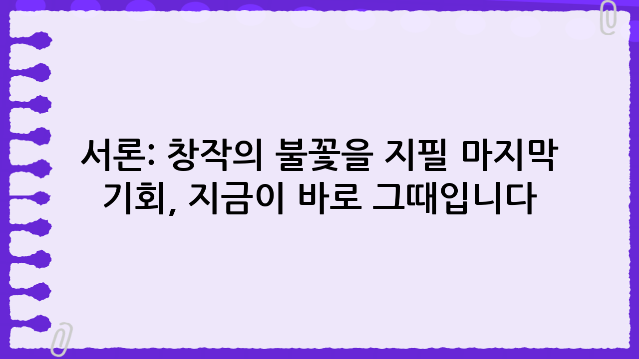 서론: 창작의 불꽃을 지필 마지막 기회, 지금이 바로 그때입니다