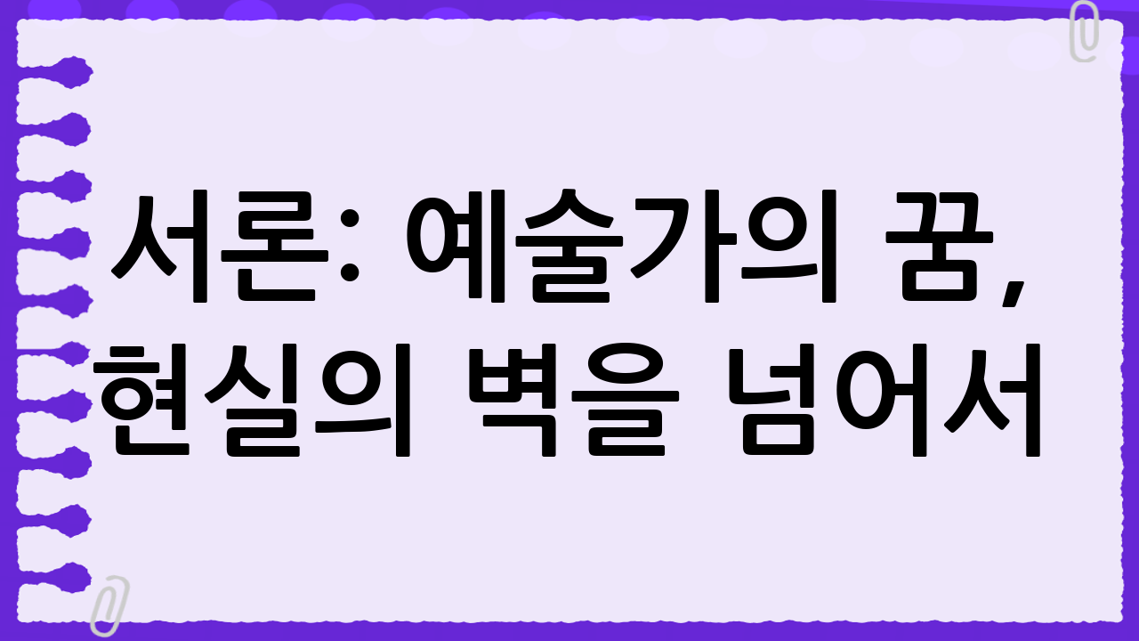 서론: 예술가의 꿈, 현실의 벽을 넘어서