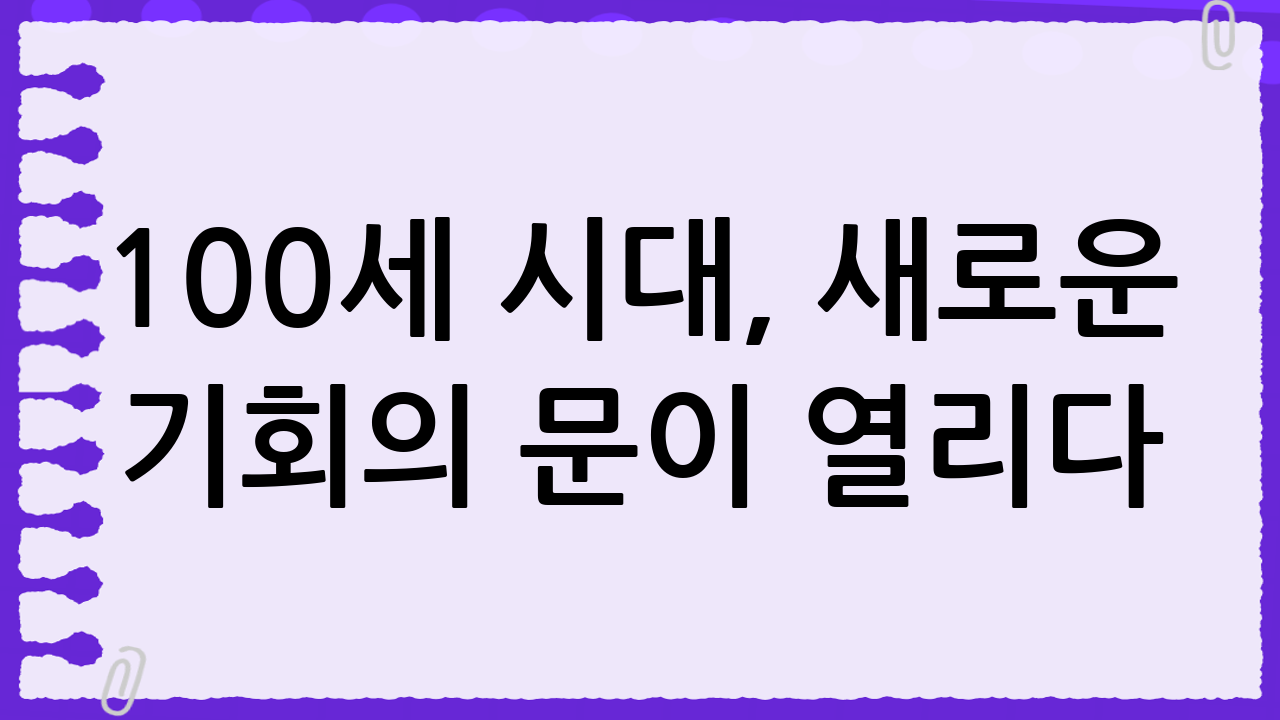 100세 시대, 새로운 기회의 문이 열리다