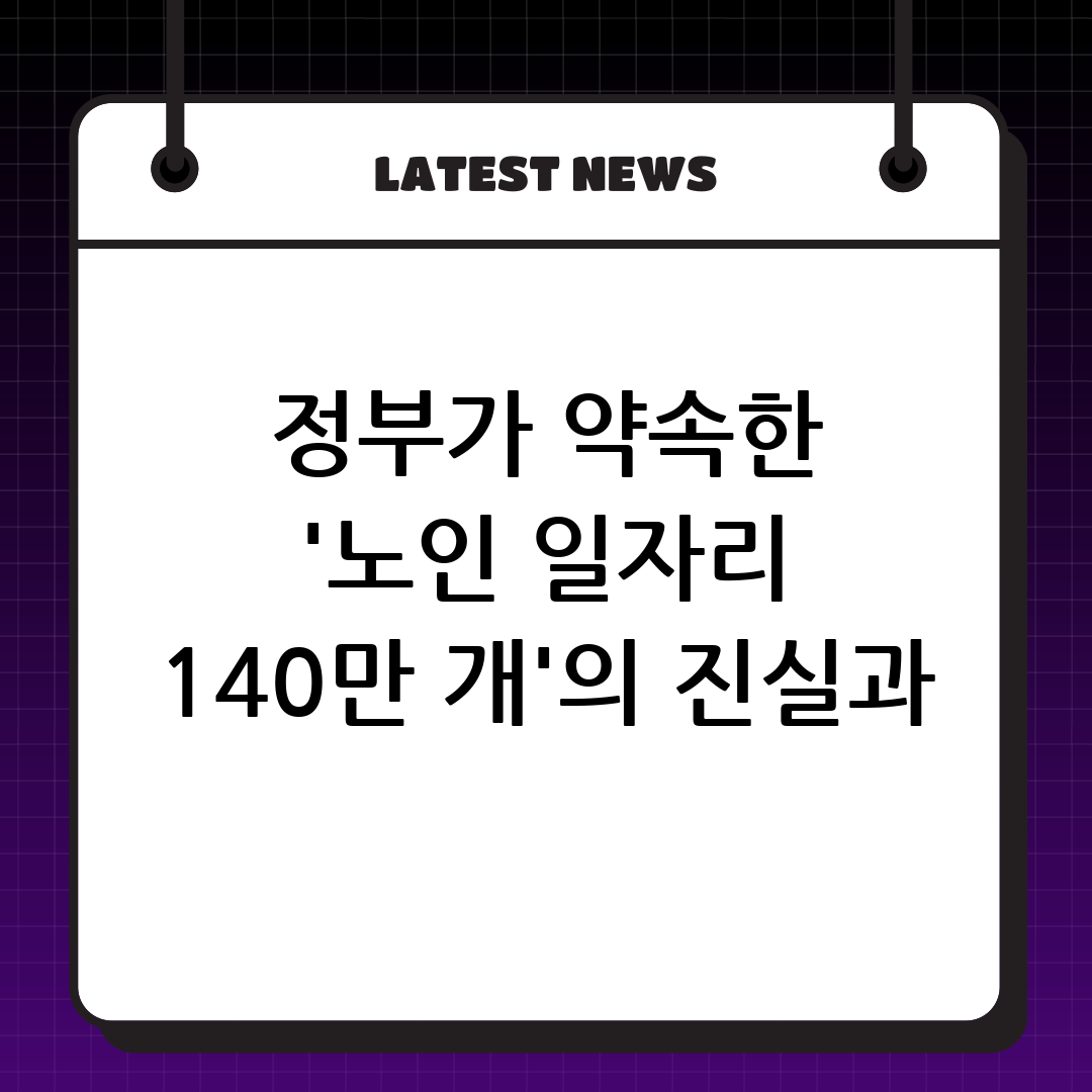 정부가 약속한 '노인 일자리 140만 개' 정책은 어르신들의 삶에 실질적인 활력을 불어넣고, 존엄한 노후를 보장하는 중요한 사회 안전망이 될 것입니다. 확대된 참여 기회와 다양해진 일자리, 그리고 현실화된 보수는 어르신들이 사회의 당당한 일원으로 참여하며 건강하고 행복한 삶을 영위하는 든든한 버팀목이 되어줄 것입니다. 지금 바로 새로운 기회의 문을 두드려 활기찬 제2의 인생을 시작해 보시길 바랍니다.