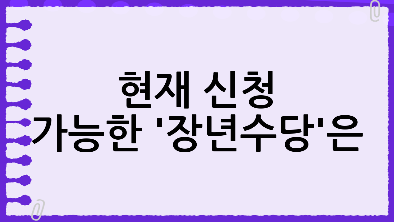 - 만 65세 이상이라면 '기초연금'을 신청하세요. 장년수당과 별개로, 만 65세 이상이고 소득인정액이 선정기준액 이하인 어르신께는 국가가 '기초연금'을 지급합니다. 아직 신청하지 않으셨다면 '복지로' 사이트나 국민연금공단, 주민센터를 통해 자격을 꼭 확인해야 합니다.