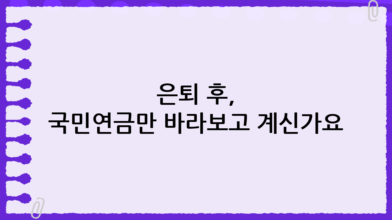 은퇴 후, 국민연금만 바라보고 계신가요?