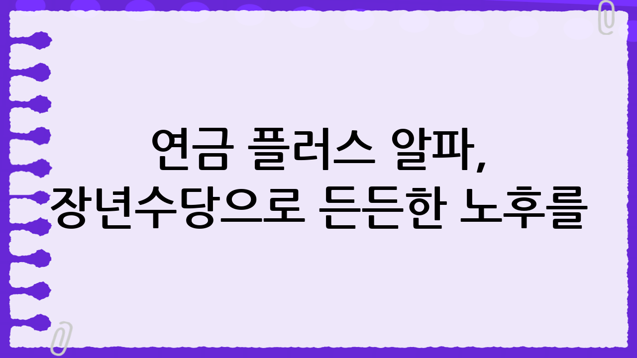 연금 플러스 알파, 장년수당으로 든든한 노후를!