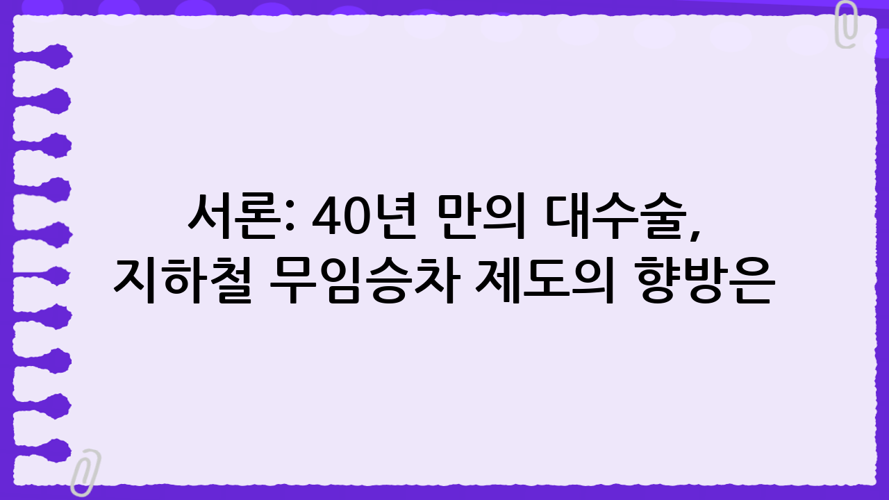 서론: 40년 만의 대수술, 지하철 무임승차 제도의 향방은?