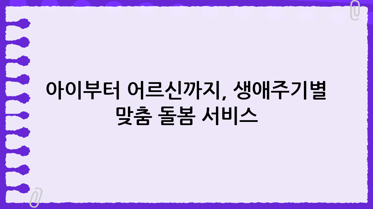 아이부터 어르신까지, 생애주기별 맞춤 돌봄 서비스