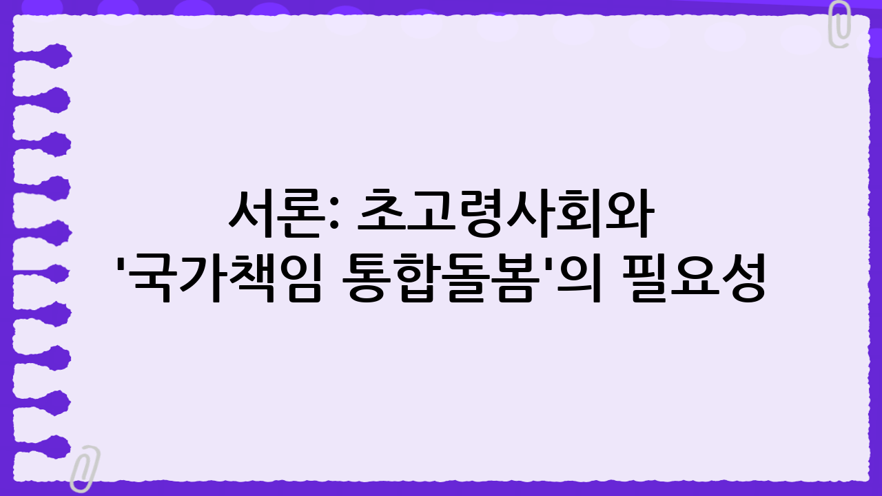 서론: 초고령사회와 '국가책임 통합돌봄'의 필요성