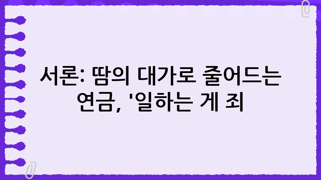 서론: 땀의 대가로 줄어드는 연금, '일하는 게 죄?'