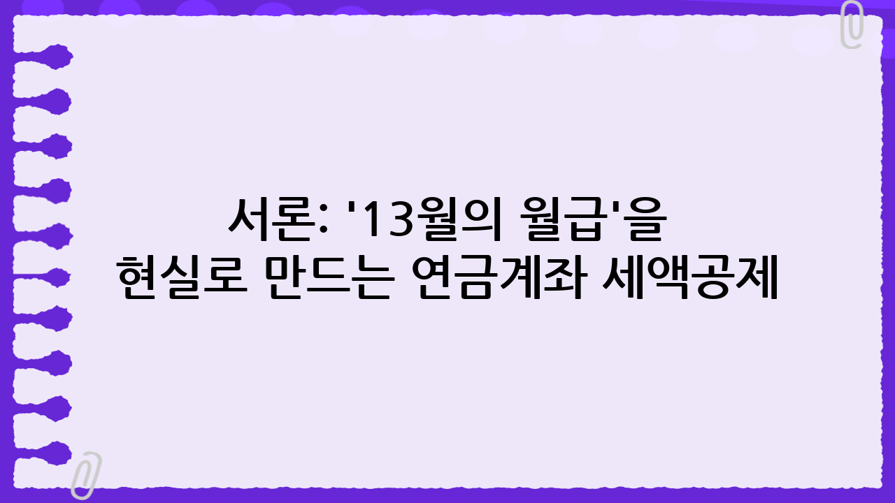 서론: '13월의 월급'을 현실로 만드는 연금계좌 세액공제