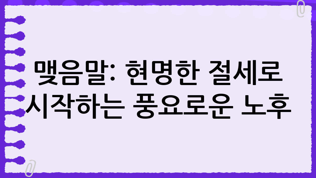 맺음말: 현명한 절세로 시작하는 풍요로운 노후