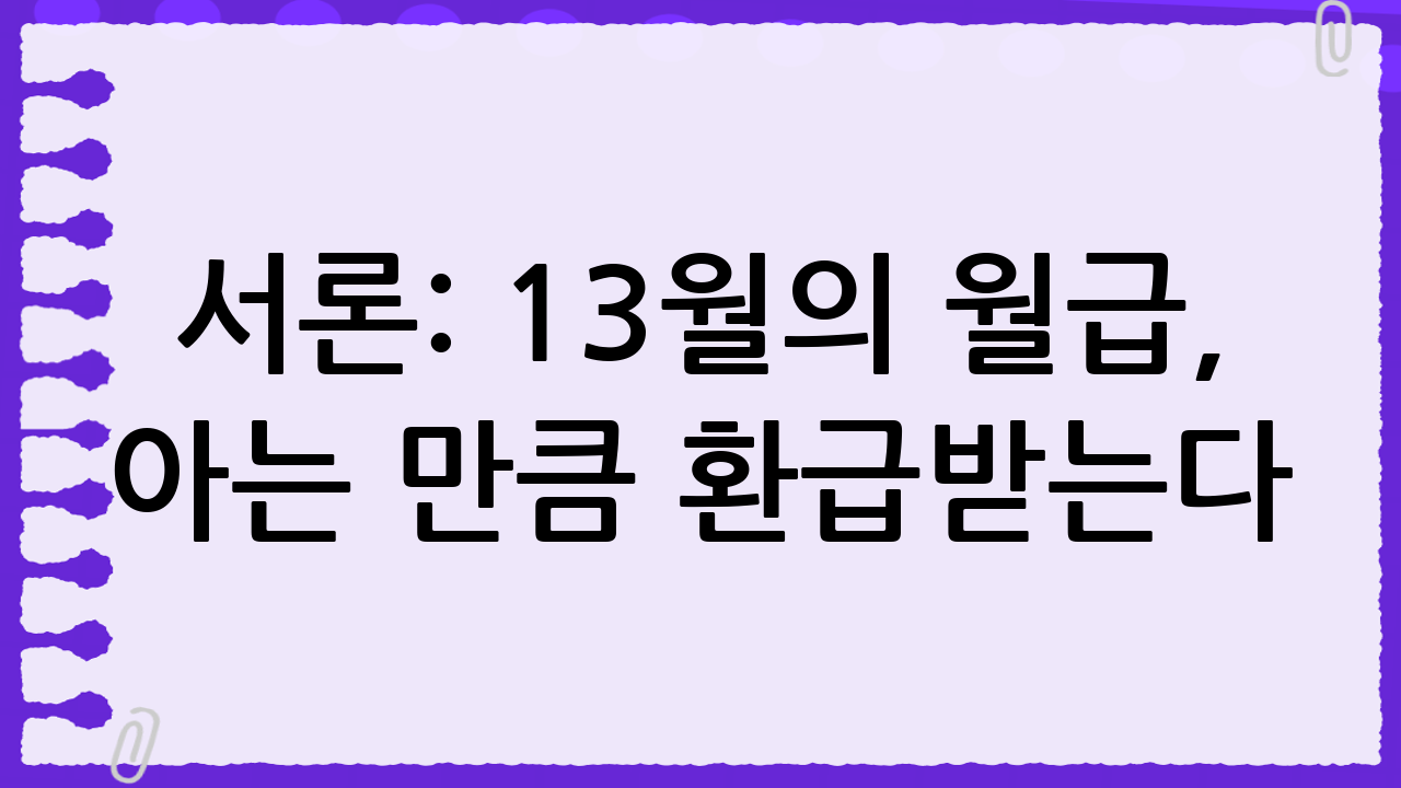 서론: 13월의 월급, 아는 만큼 환급받는다