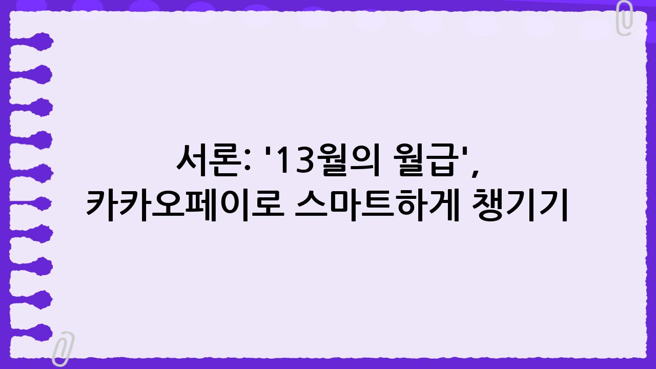 서론: '13월의 월급', 카카오페이로 스마트하게 챙기기