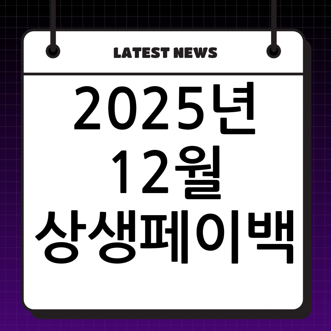 - 실생활 적용 Tip: 내년에 구매하려던 가전제품, 자동차 보험료 갱신, 병원비 결제 등 목돈이 드는 지출을 12월로 앞당기세요. 이를 통해 상생페이백 환급은 물론, 총급여의 25% 초과 사용분부터 적용되는 연말정산 신용카드 소득공제 혜택까지 동시에 챙길 수 있습니다.