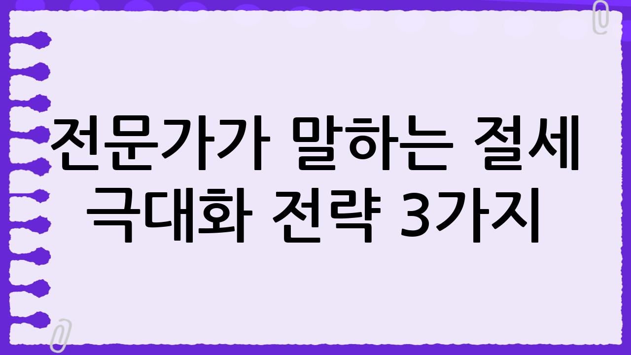 전문가가 말하는 절세 극대화 전략 3가지