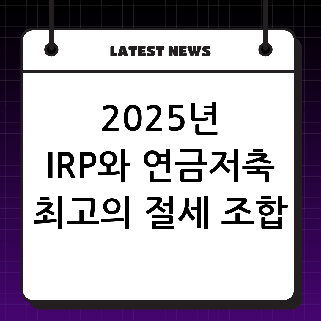 IRP와 연금저축은 복잡해 보이지만, 본인의 투자 성향과 자금 계획에 맞춰 활용하면 최고의 절세 도구가 될 수 있습니다. 안정성을 중시한다면 IRP, 공격적인 투자를 원한다면 연금저축, 세제 혜택 극대화를 원한다면 두 상품을 전략적으로 조합하여 2025년 연말정산의 승자가 되시길 바랍니다. 작은 시작이 풍요로운 노후를 만듭니다.