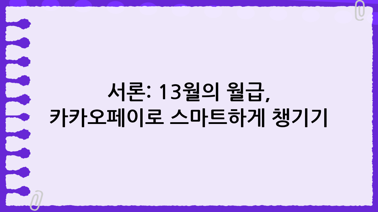 서론: 13월의 월급, 카카오페이로 스마트하게 챙기기