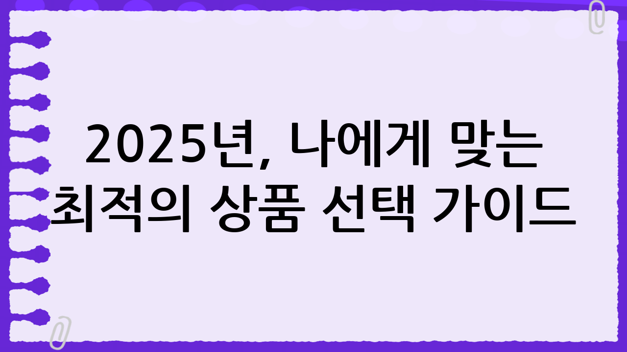 2025년, 나에게 맞는 최적의 상품 선택 가이드