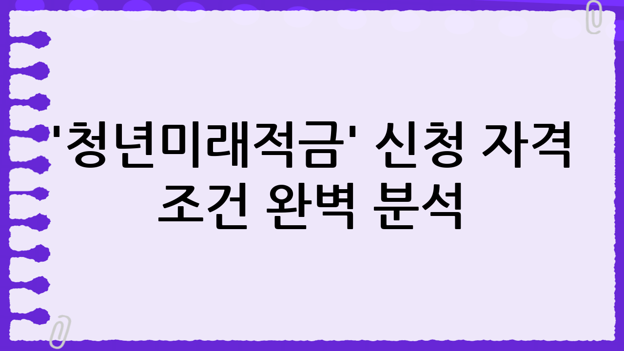 '청년미래적금' 신청 자격 조건 완벽 분석