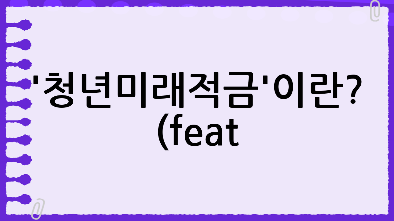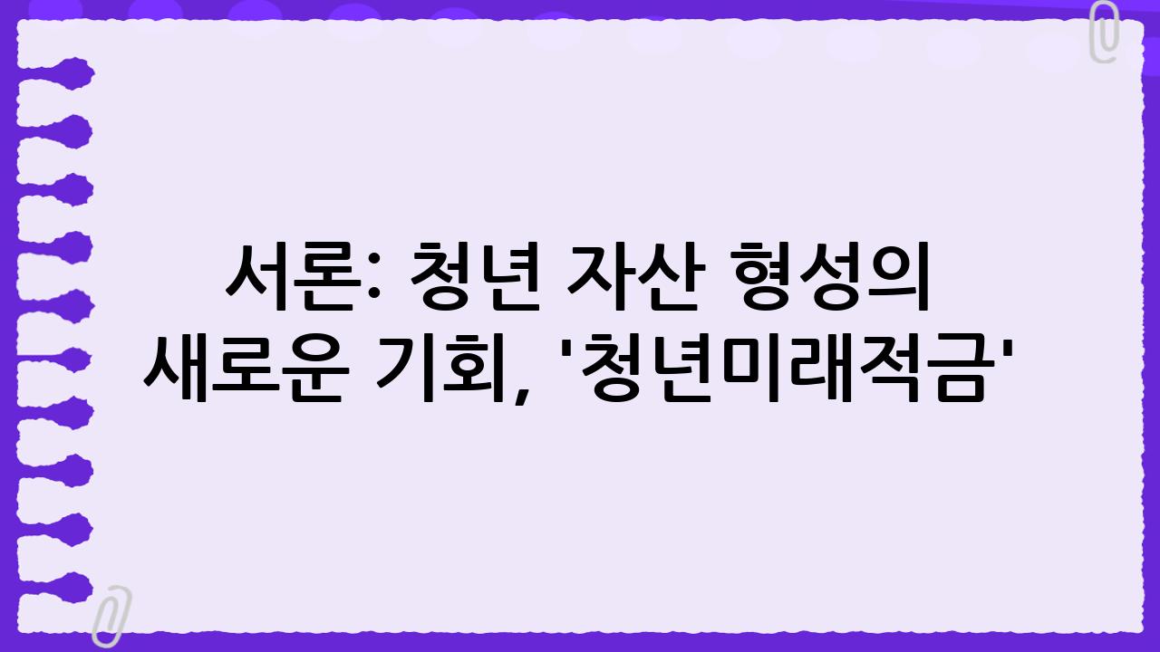 서론: 청년 자산 형성의 새로운 기회, '청년미래적금'