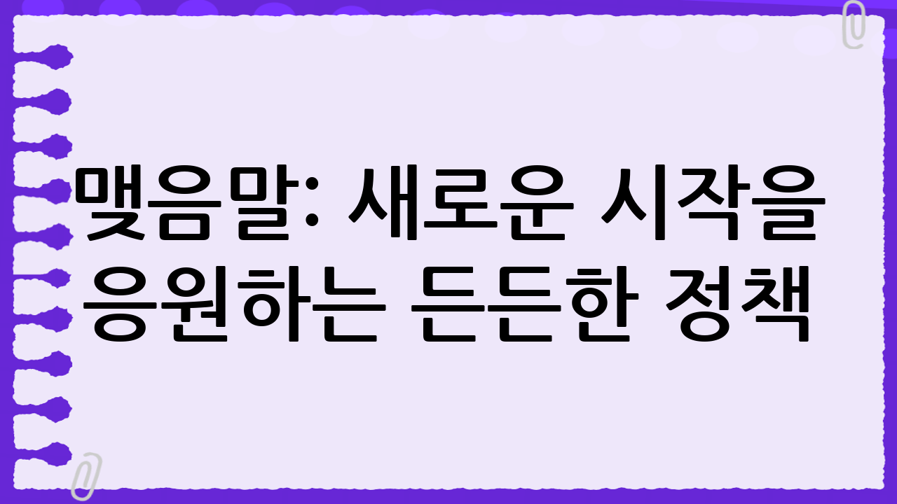 맺음말: 새로운 시작을 응원하는 든든한 정책