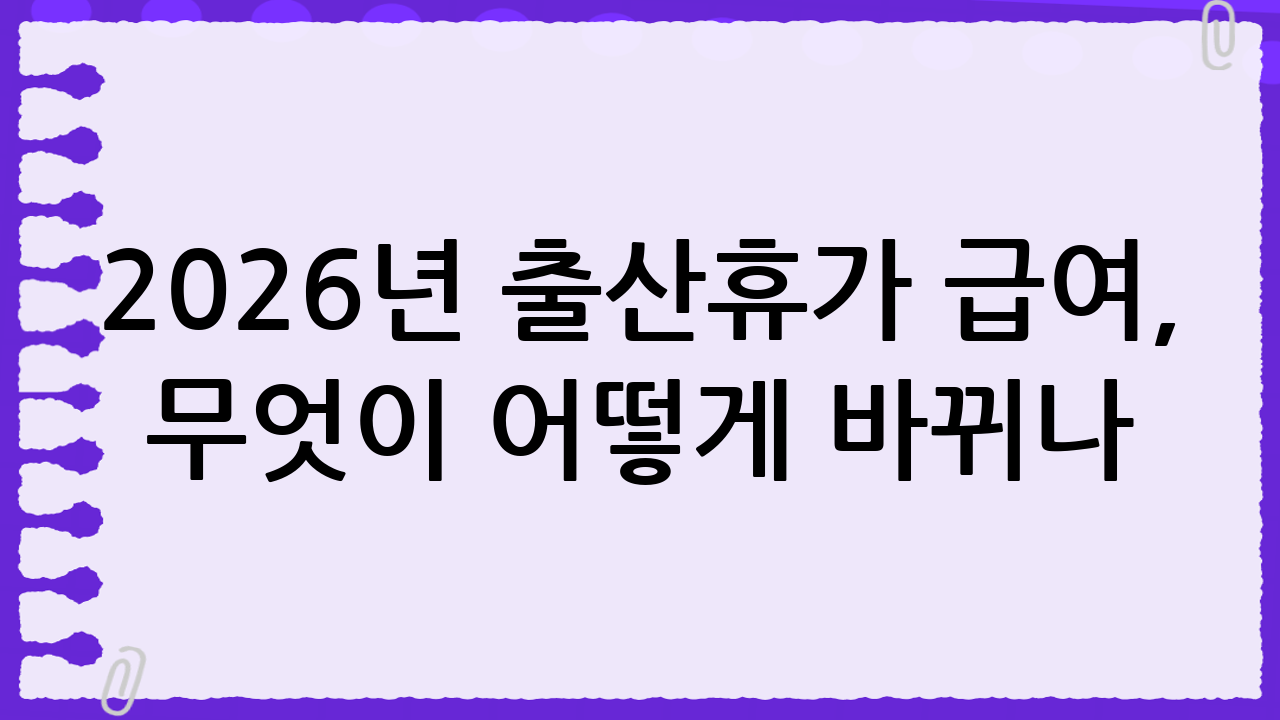 2026년 출산휴가 급여, 무엇이 어떻게 바뀌나?