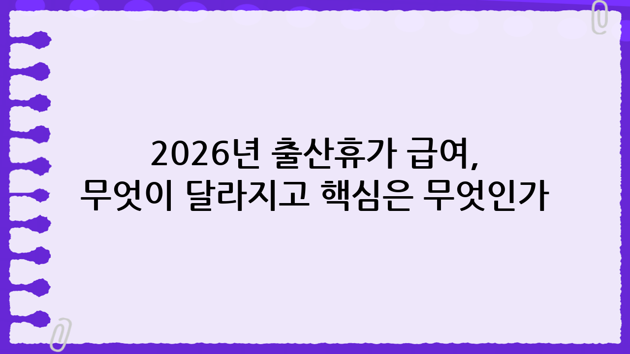 2026년 출산휴가 급여, 무엇이 달라지고 핵심은 무엇인가?