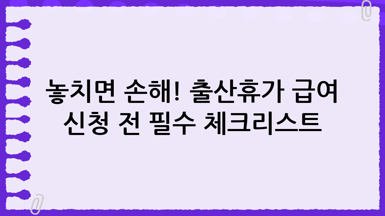 놓치면 손해! 출산휴가 급여 신청 전 필수 체크리스트