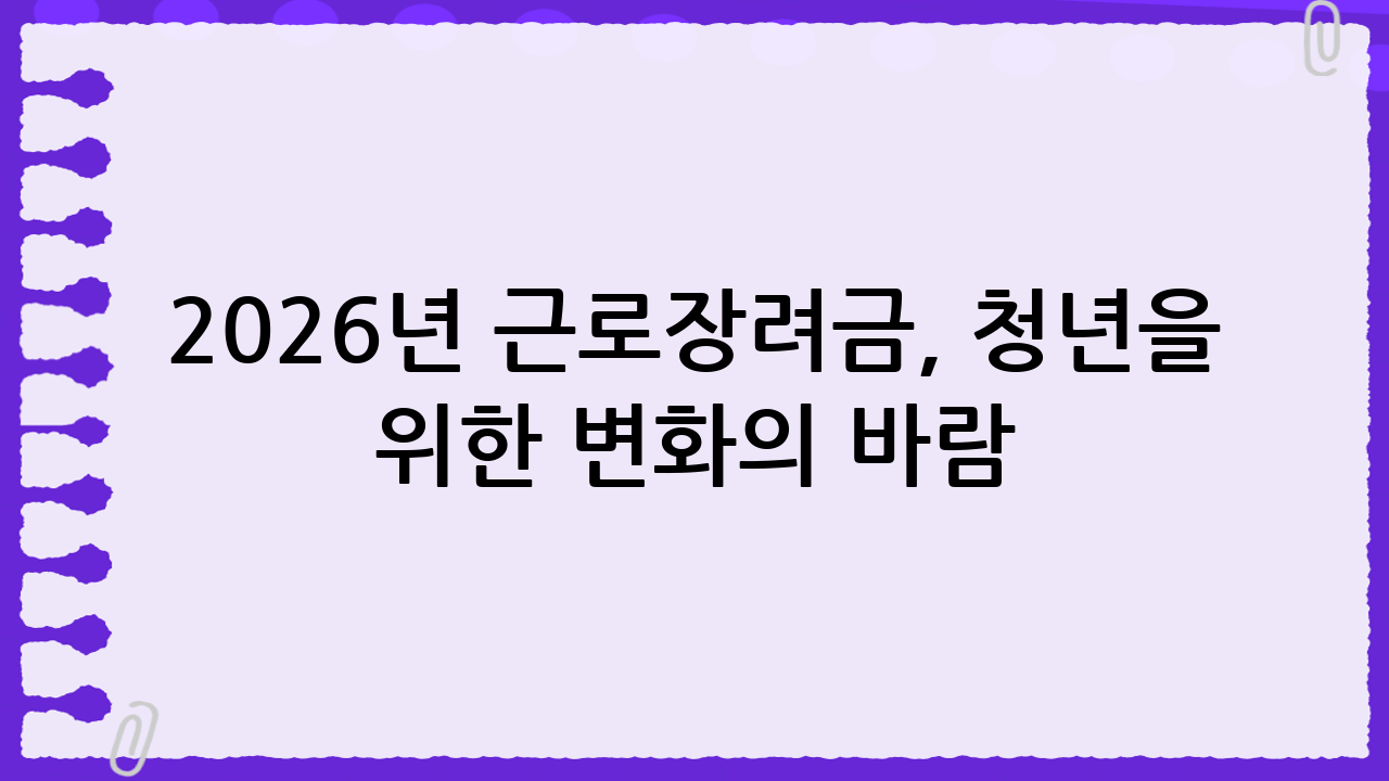2026년 근로장려금, 청년을 위한 변화의 바람