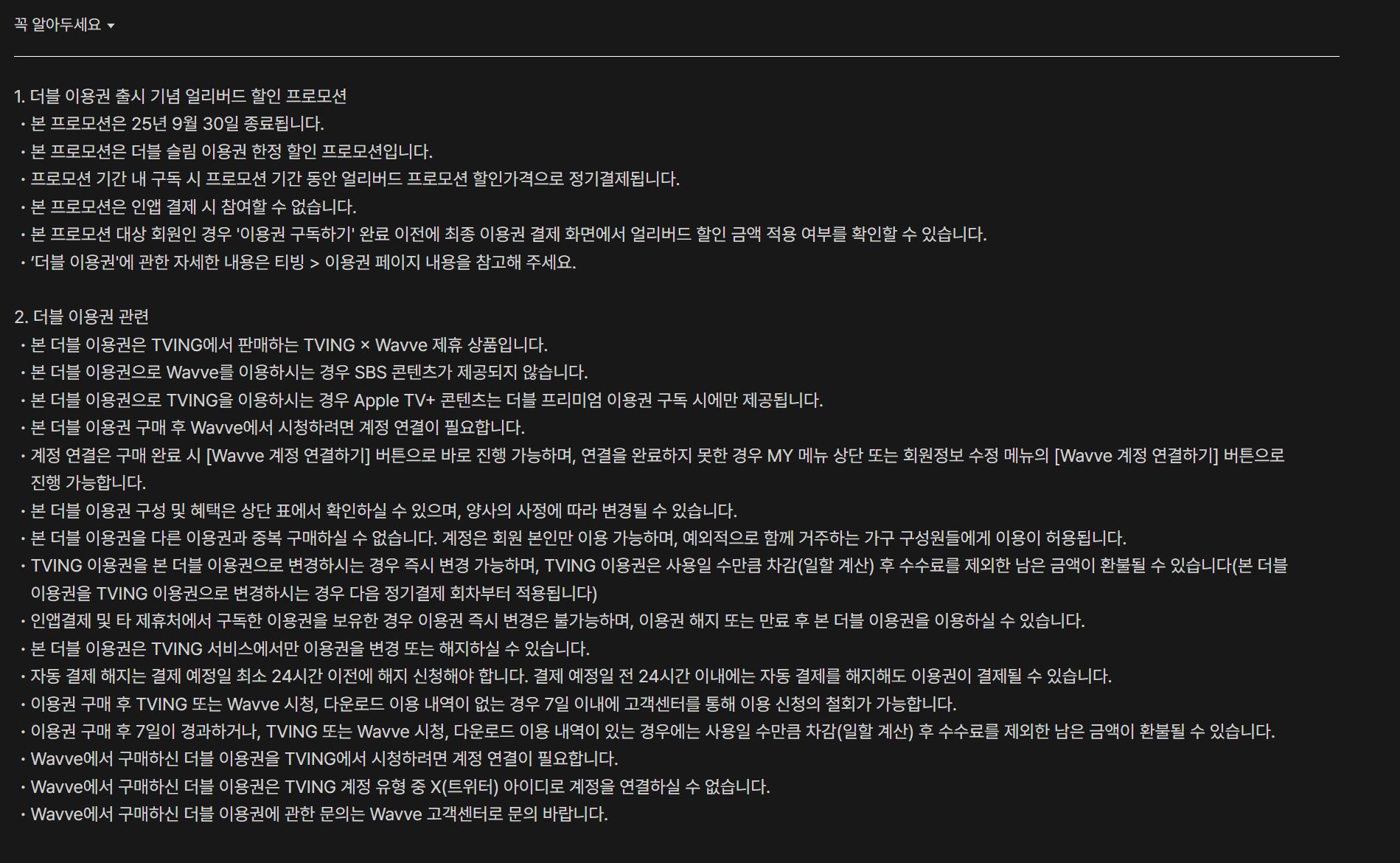 - 콘텐츠 감상량이 많은 분, 두 플랫폼 모두 구독하고 싶은 분께 추천합니다.