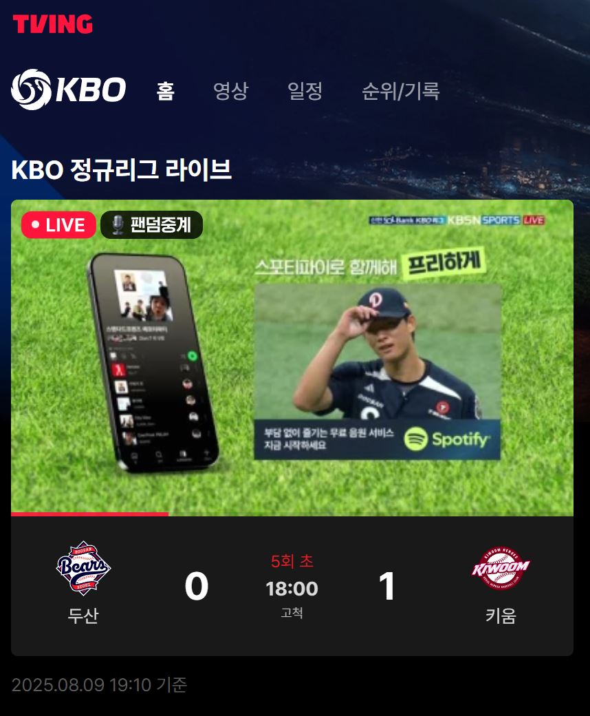 - EPL, KBO, UFC 등 실시간 중계