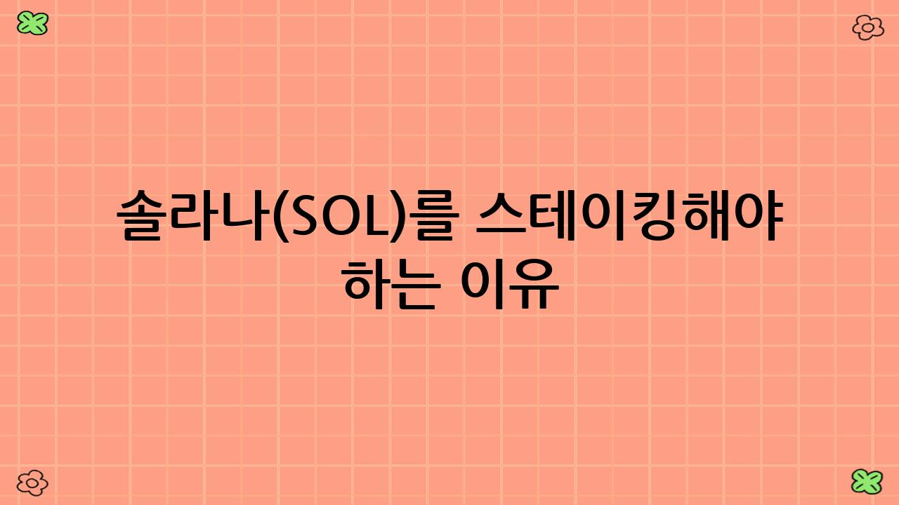 솔라나(SOL)를 스테이킹해야 하는 이유
