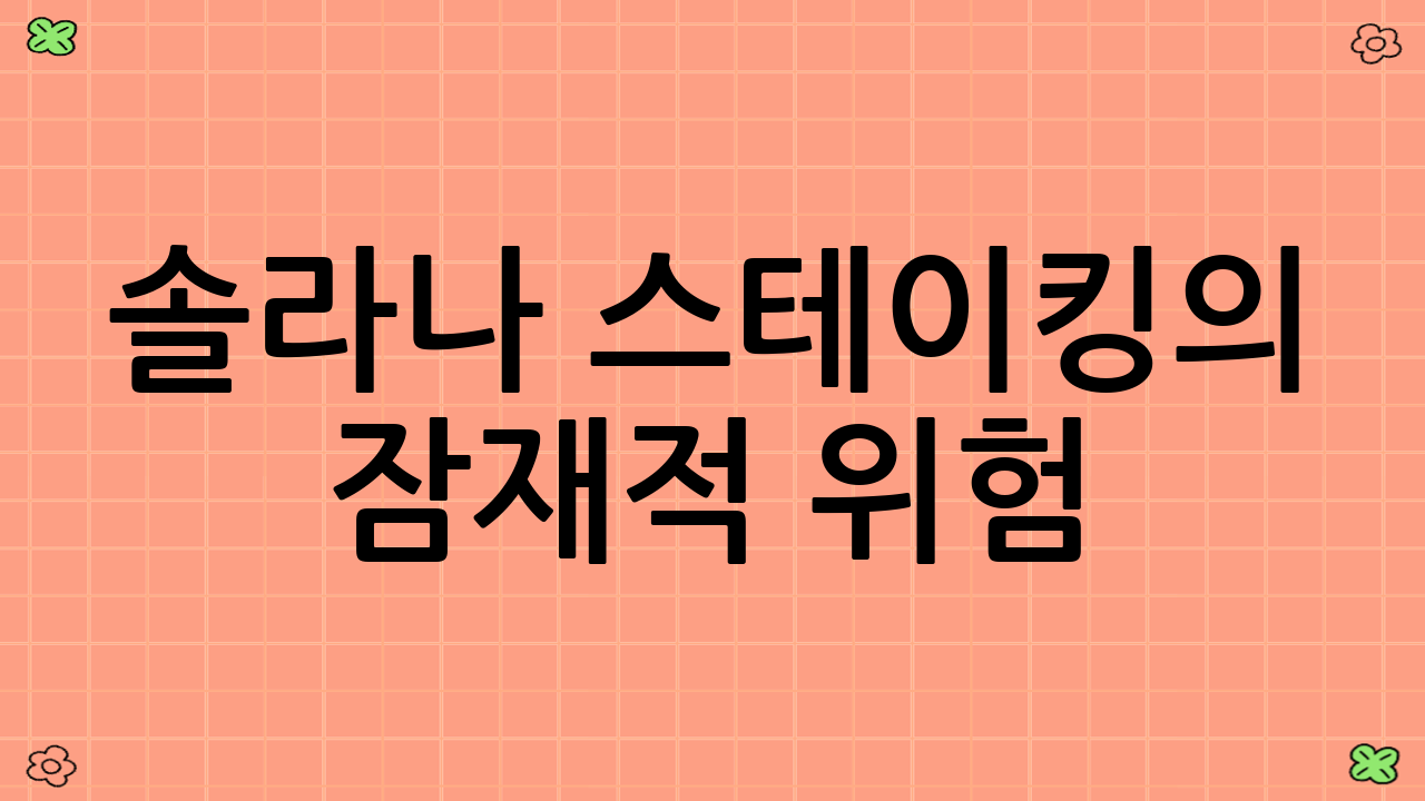 모든 투자에는 위험이 따르듯, 솔라나 스테이킹 시에도 유의해야 할 점들이 있습니다.
