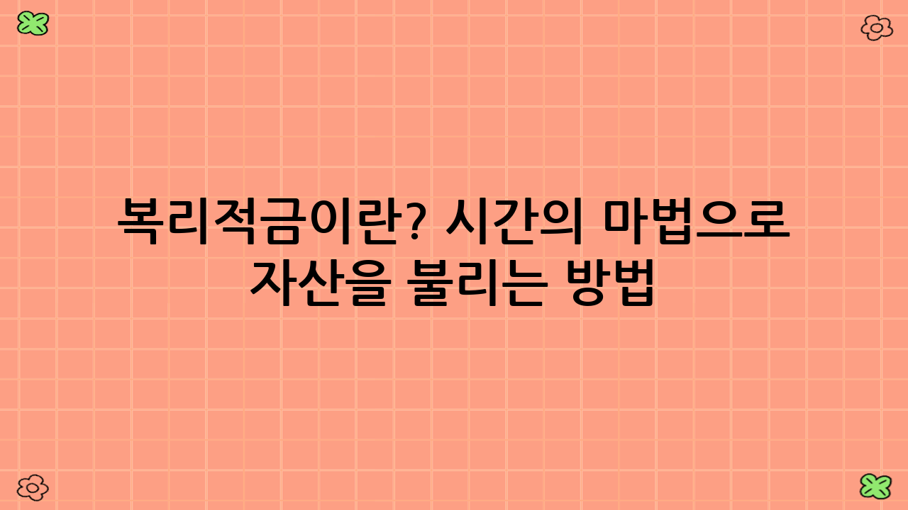복리적금이란? 시간의 마법으로 자산을 불리는 방법