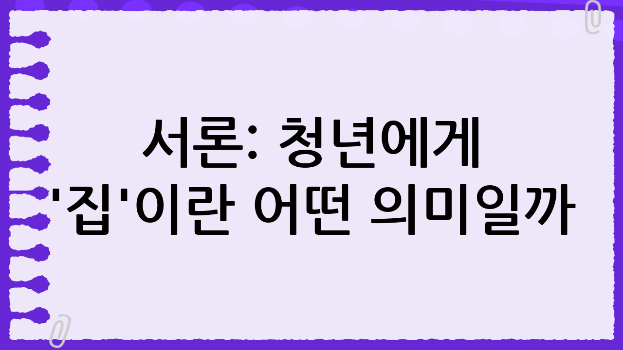 서론: 청년에게 '집'이란 어떤 의미일까?