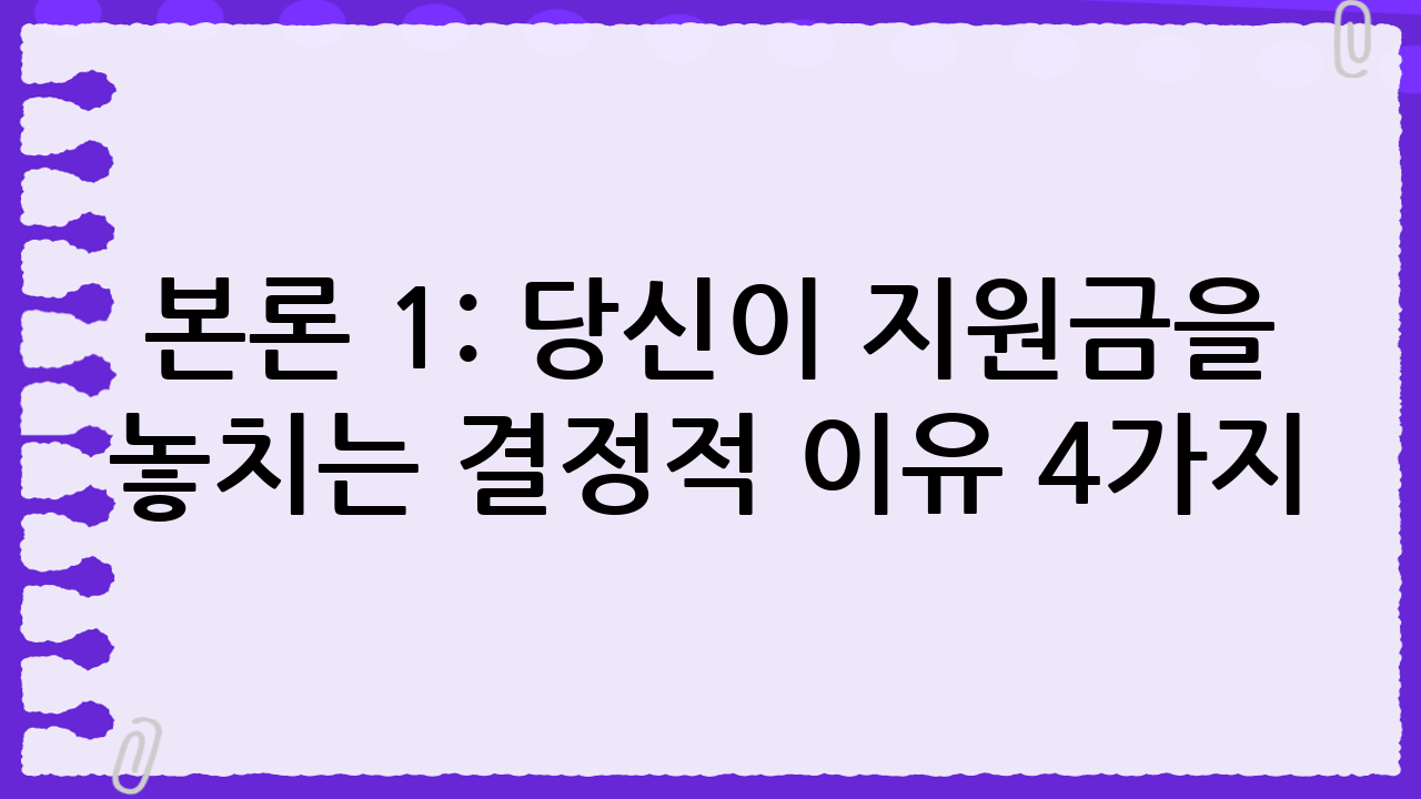 본론 1: 당신이 지원금을 놓치는 결정적 이유 4가지