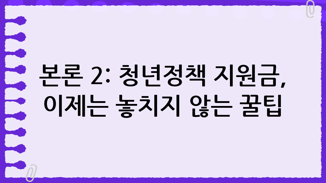본론 2: 청년정책 지원금, 이제는 놓치지 않는 꿀팁!
