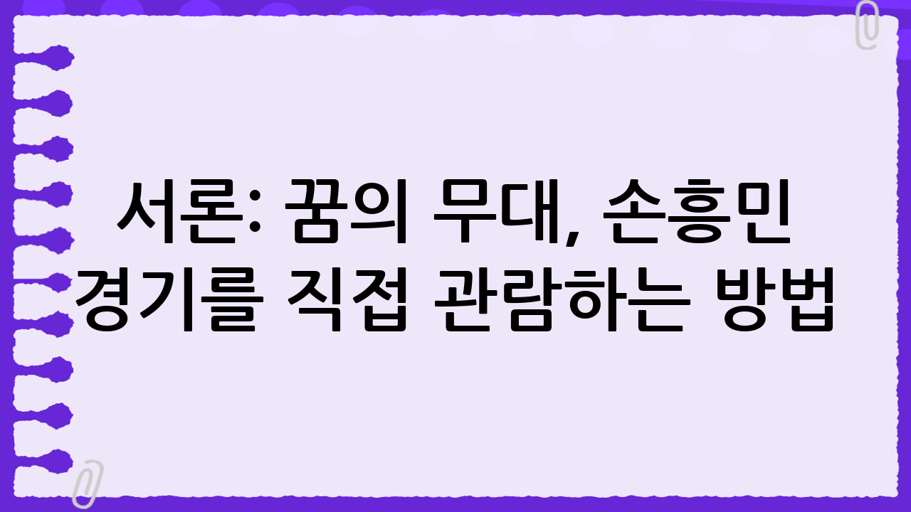 서론: 꿈의 무대, 손흥민 경기를 직접 관람하는 방법