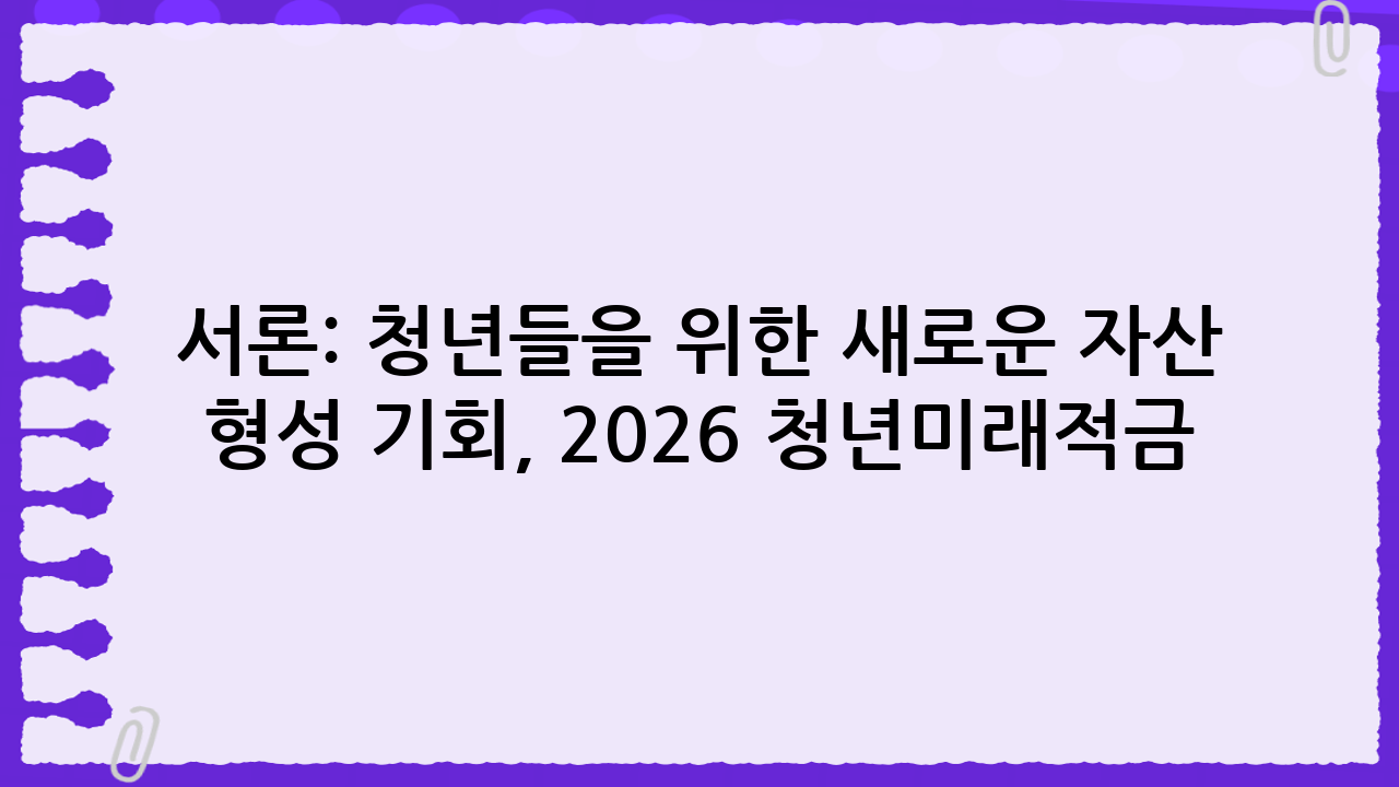 서론: 청년들을 위한 새로운 자산 형성 기회, 2026 청년미래적금