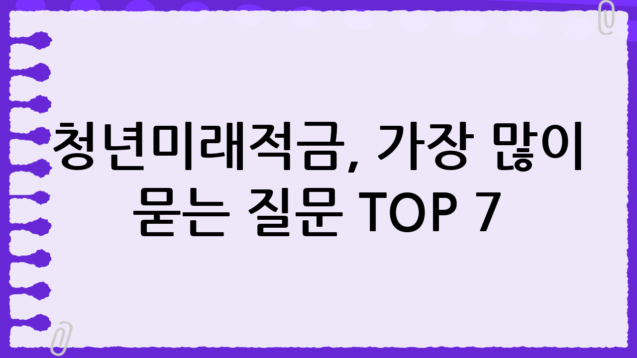 청년미래적금, 가장 많이 묻는 질문 TOP 7