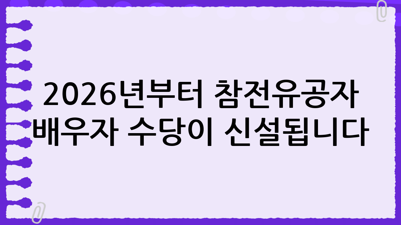 2026년부터 참전유공자 배우자 수당이 신설됩니다: 지급액, 대상, 신청 방법 총정리