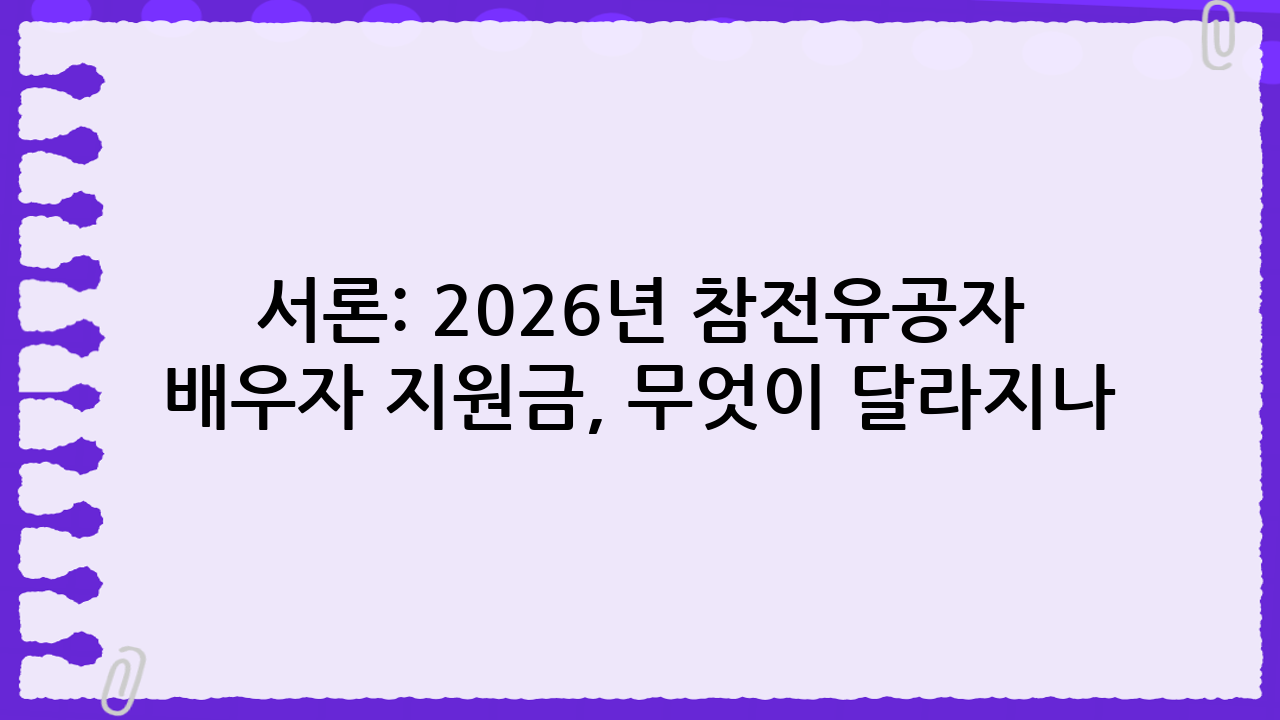 서론: 2026년 참전유공자 배우자 지원금, 무엇이 달라지나?