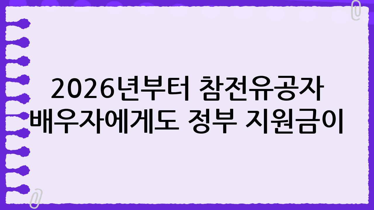 2026년부터 참전유공자 배우자에게도 정부 지원금이 지급됩니다