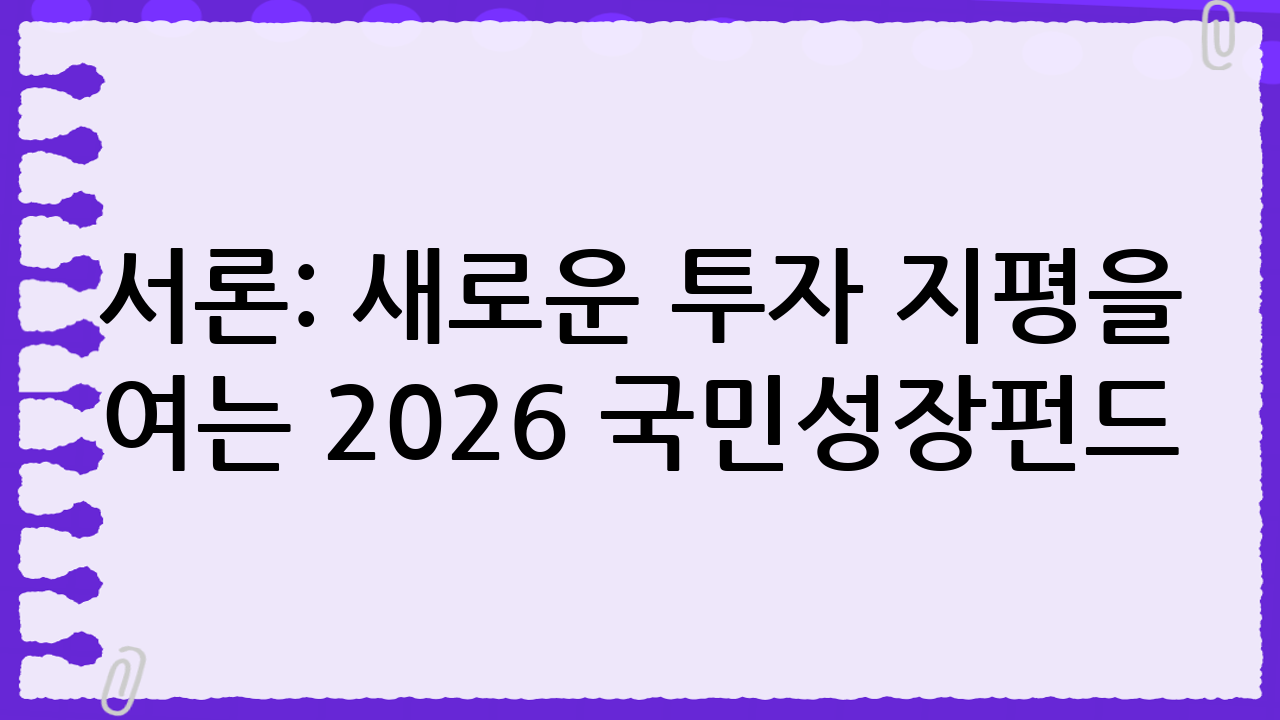 서론: 새로운 투자 지평을 여는 2026 국민성장펀드