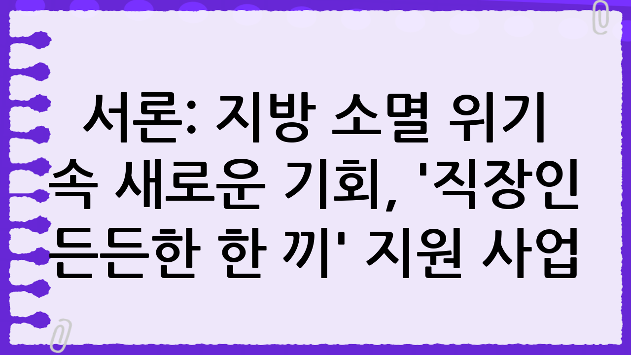 서론: 지방 소멸 위기 속 새로운 기회, '직장인 든든한 한 끼' 지원 사업