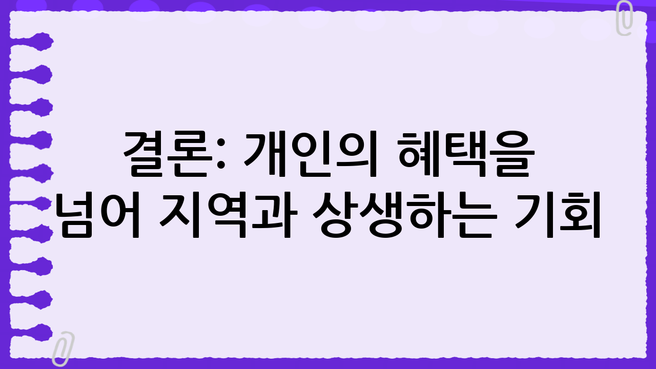 결론: 개인의 혜택을 넘어 지역과 상생하는 기회